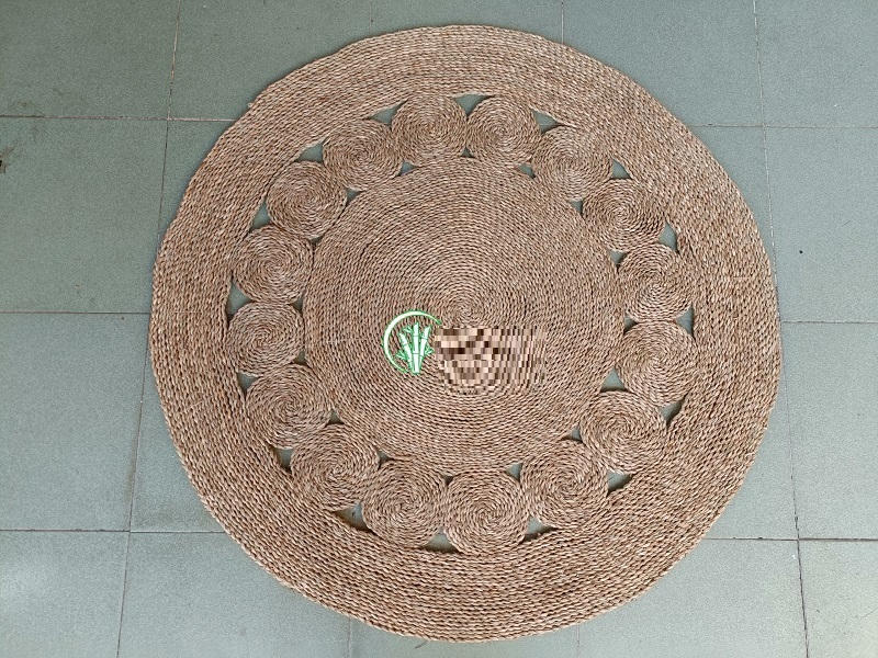 Thảm cói họa tiết tròn được gọi cái tên là thảm cói họa tiết mặt trời có chất liệu là cói tự nhiên,kích thước: Đường kính D120m ,D150cm Xuất xứ: Hàng Việt Nam đạt tiêu chuẩn xuất khẩu